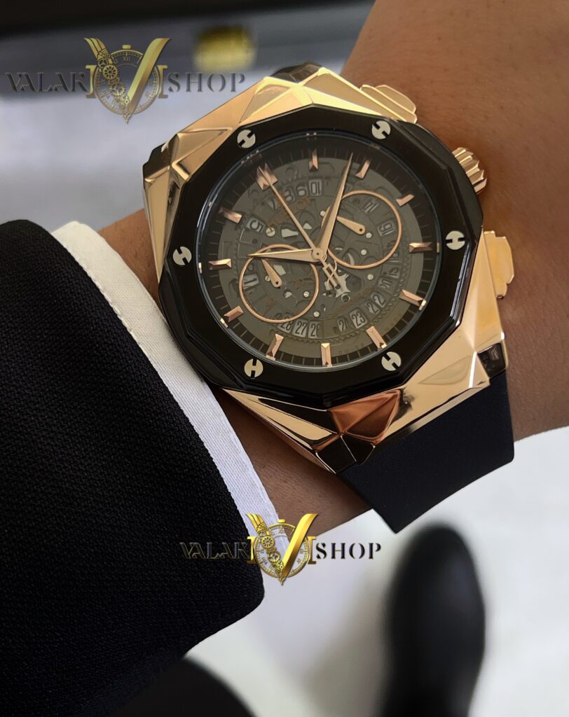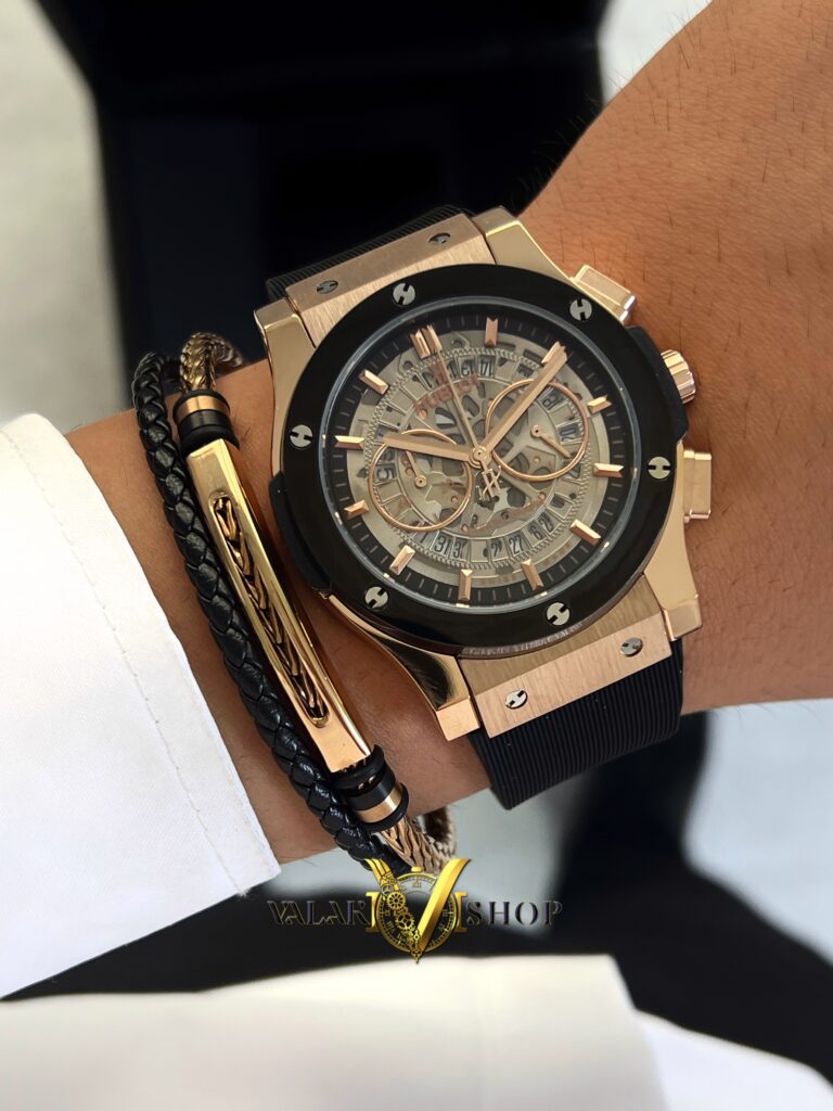 ساعت مردانه هابلوت کرنو مشکی رزگلد اسکلتون Hublot