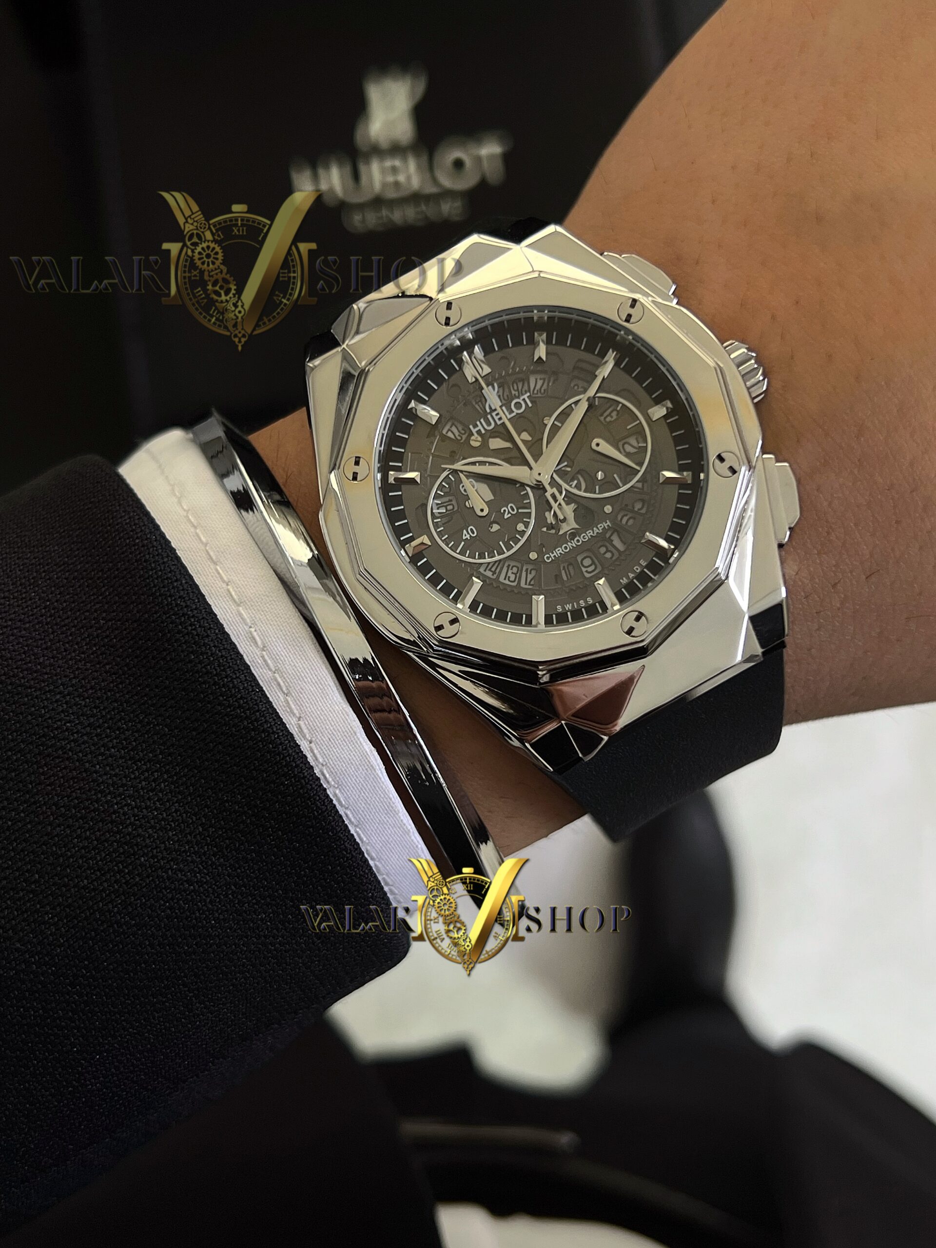 ساعت مردانه هابلوت الماسی کرنو نقره ای اسکلتون Hublot