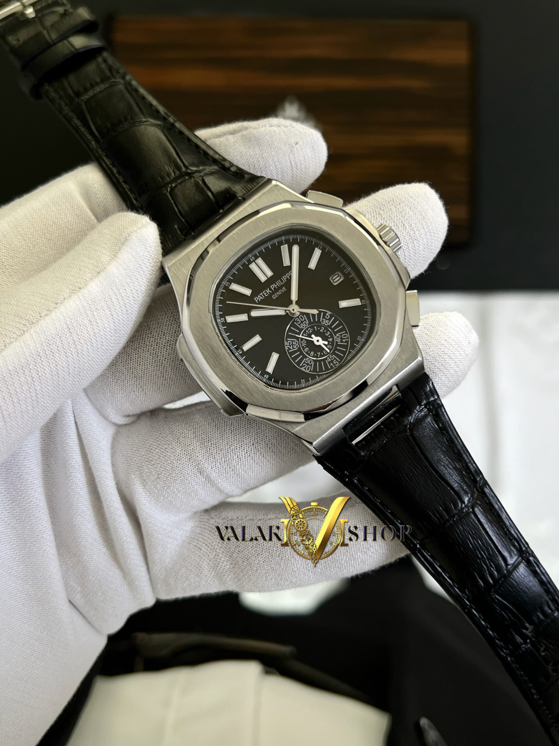 ساعت مردانه پتک فیلیپ ناتیلوس بند چرمی اتومات Patek Philippe Nautilus